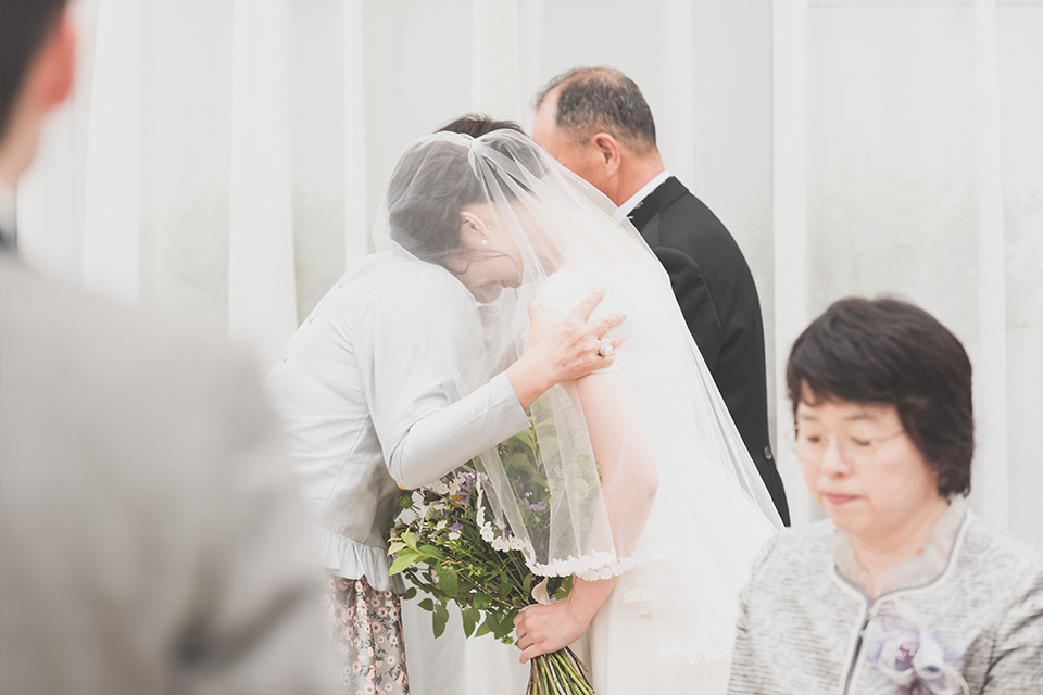 お付き合いが長くプロポーズも出来ず終いだった新郎様。新婦様のご実家へ同行して頂き、親御様がどんな風に新婦様を育てられたのかを感じ、この家族の一員になるんだという想いのもと、手作りの指輪でプロポーズをされました。